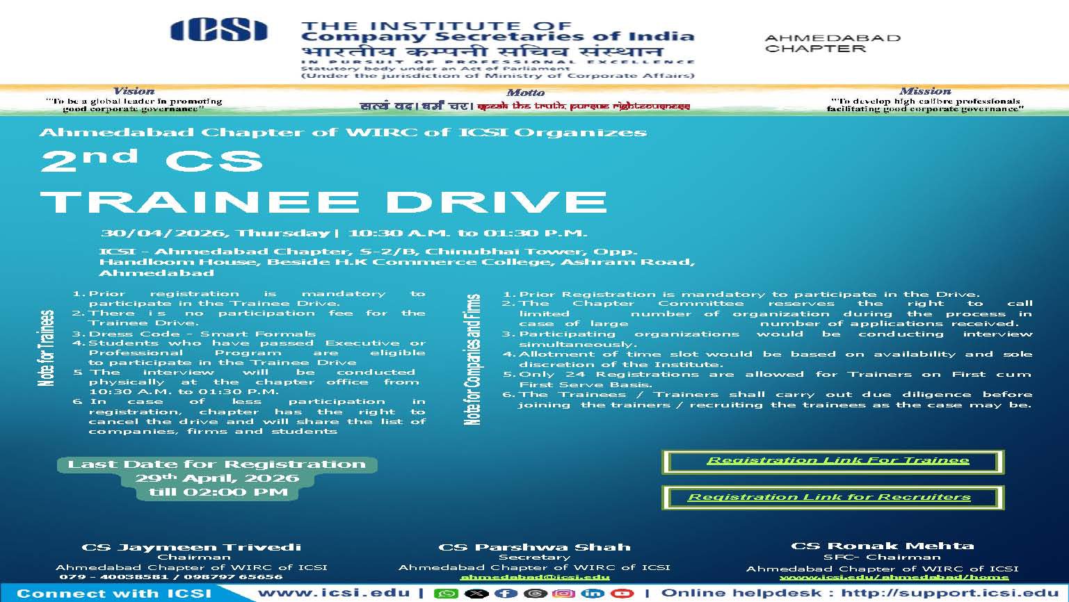 Register for upcoming TDOP Batch at Ahmedabad Chapter (Tentative from 27 to 29 April, 2026)