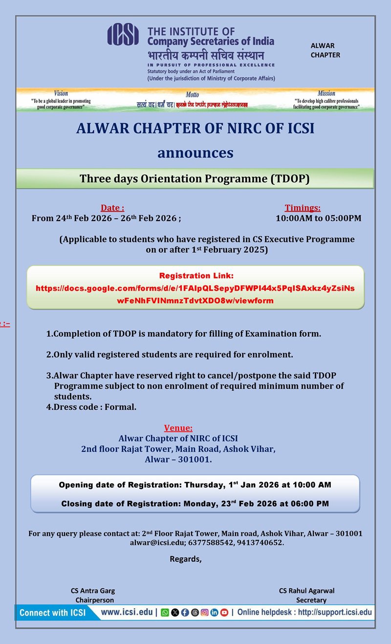 TDOP registration Link for 24th Feb to 26th Feb 2026 :