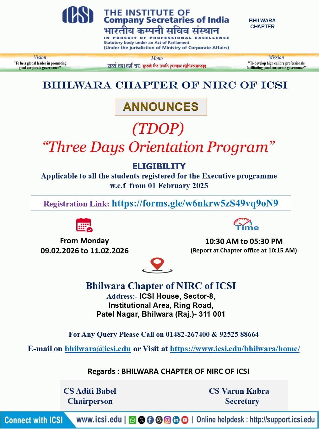 Registration of Company Secretary Executive Entrance Test (CSEET)-January 2024 Session last date 15th December 2023.