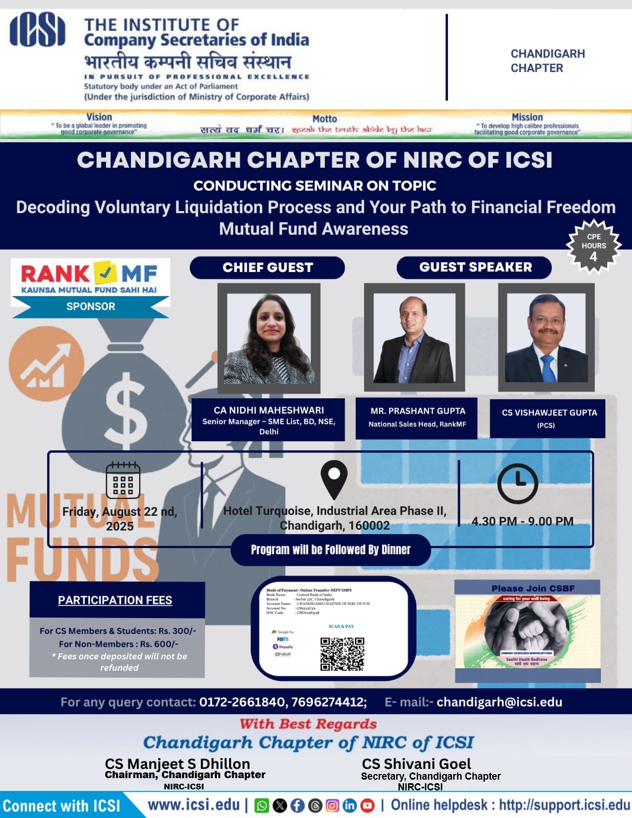 Seminar on “Decoding Voluntary Liquidation Process and Your Path to Financial Freedom” with a special focus on “Mutual Fund Awareness,” Aug 22, 2025