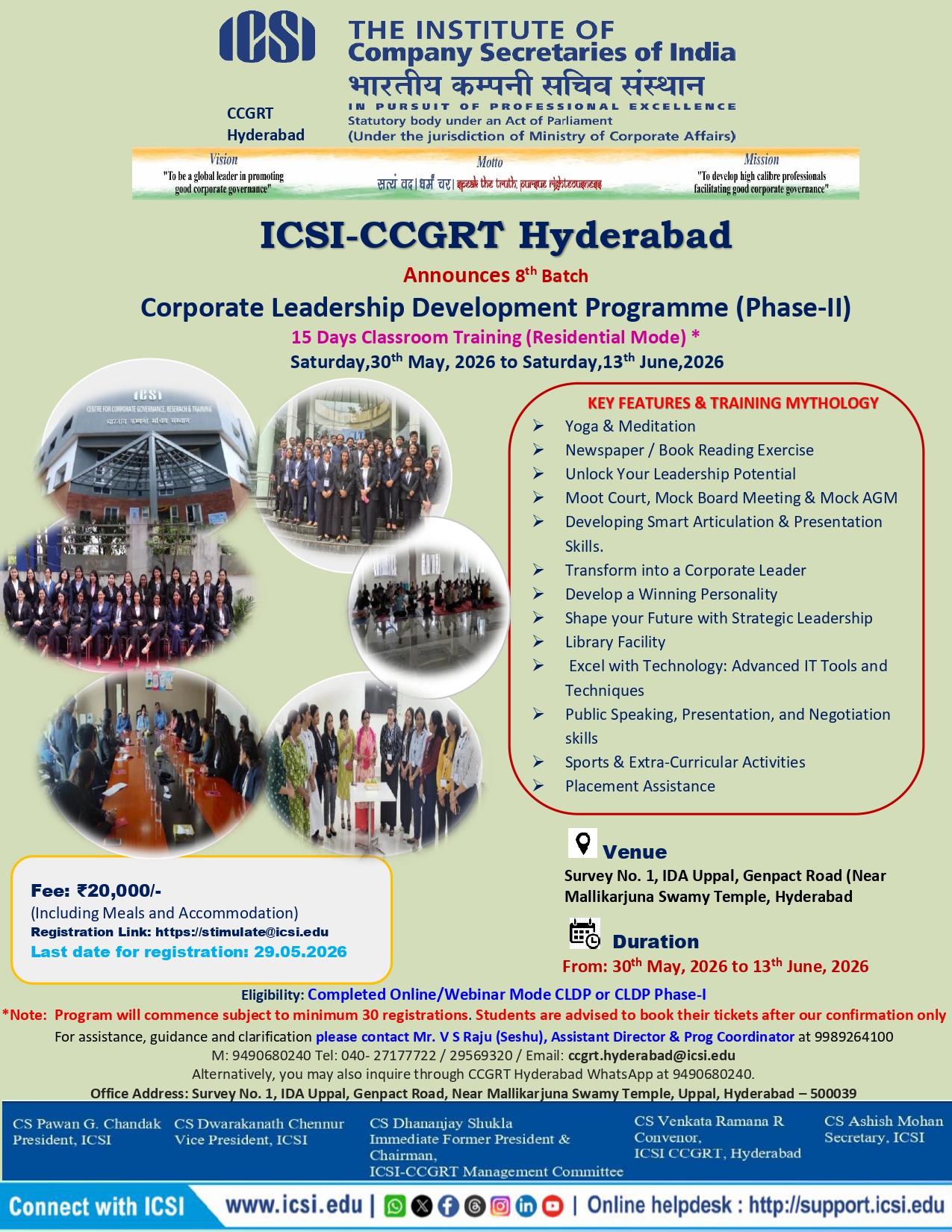 Mr. Santosh Srivastava, Mob. 9369695204 , Email –kanpur@icsi.edu