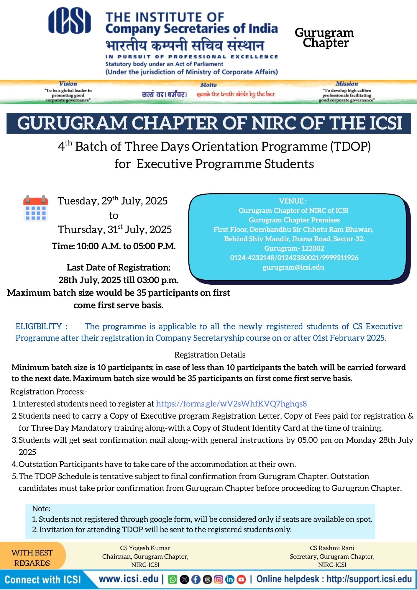 THE GURUGRAM CHAPTER OF THE ICSI First Floor, Deenbandhu Sir Chhotu Ram Bhawan ,Jharsa Road, Behind Shiv Mandir, SECTOR-32 GURUGRAM 1 2 2 0 0 2 M - 9999311926
