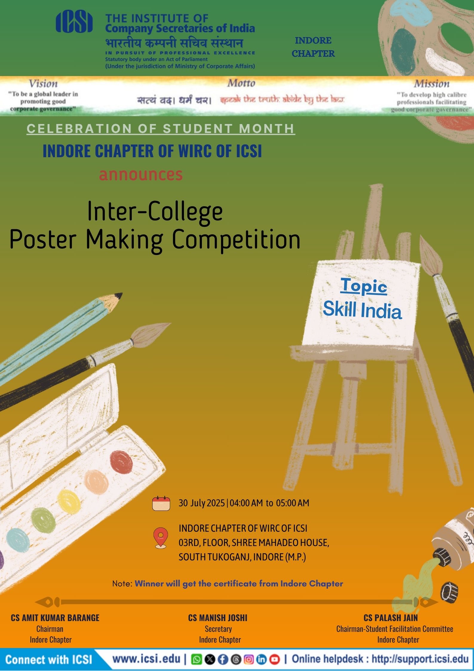 • INDORE CHAPTER INTER-COLLEGE POSTER MAKING COMPETITION on 30.07.2025