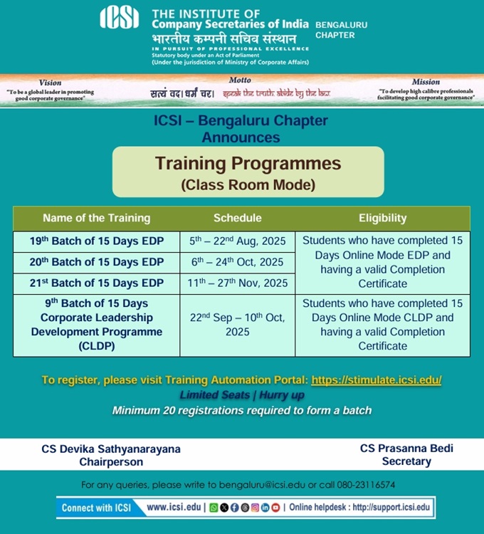 • Bengaluru Chapter_15 days EDP in Classroom Mode