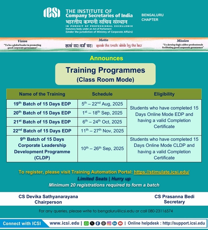 Bengaluru Chapter_15 days CLDP in Classroom Mode