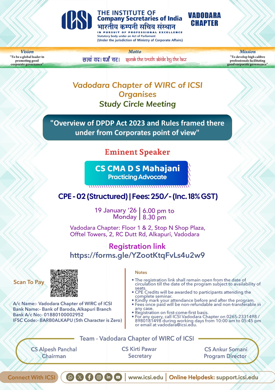Vadodara Chapter organises Study Circle Meeting on 19th January, 2026 from 6 PM to 8:30 PM
