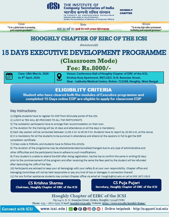 HOOGHLY CHAPTER'S 15 DAYS CLASS ROOM MODE EXECUTIVE DEVELOPMENT PROGRAM