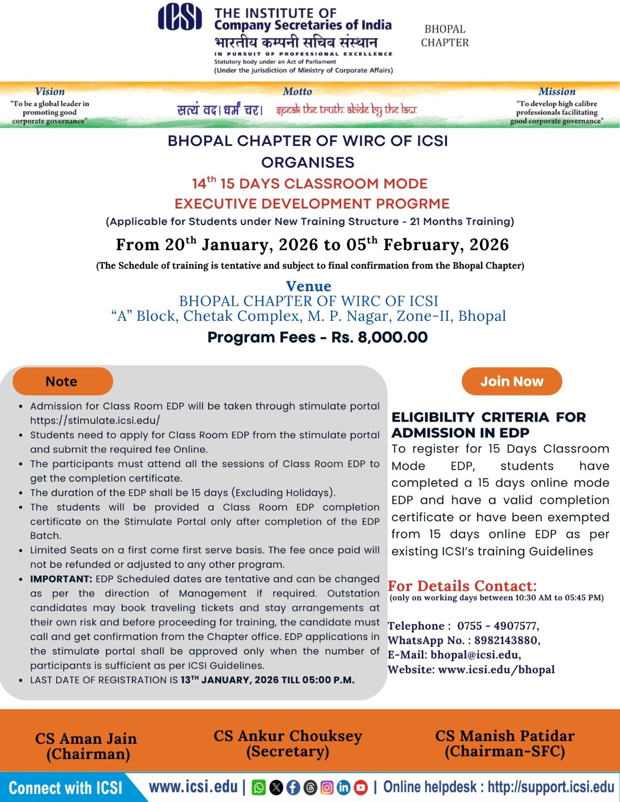Bhopal -15 DAYS EDP from 20.01.2026 to 05.02.2026