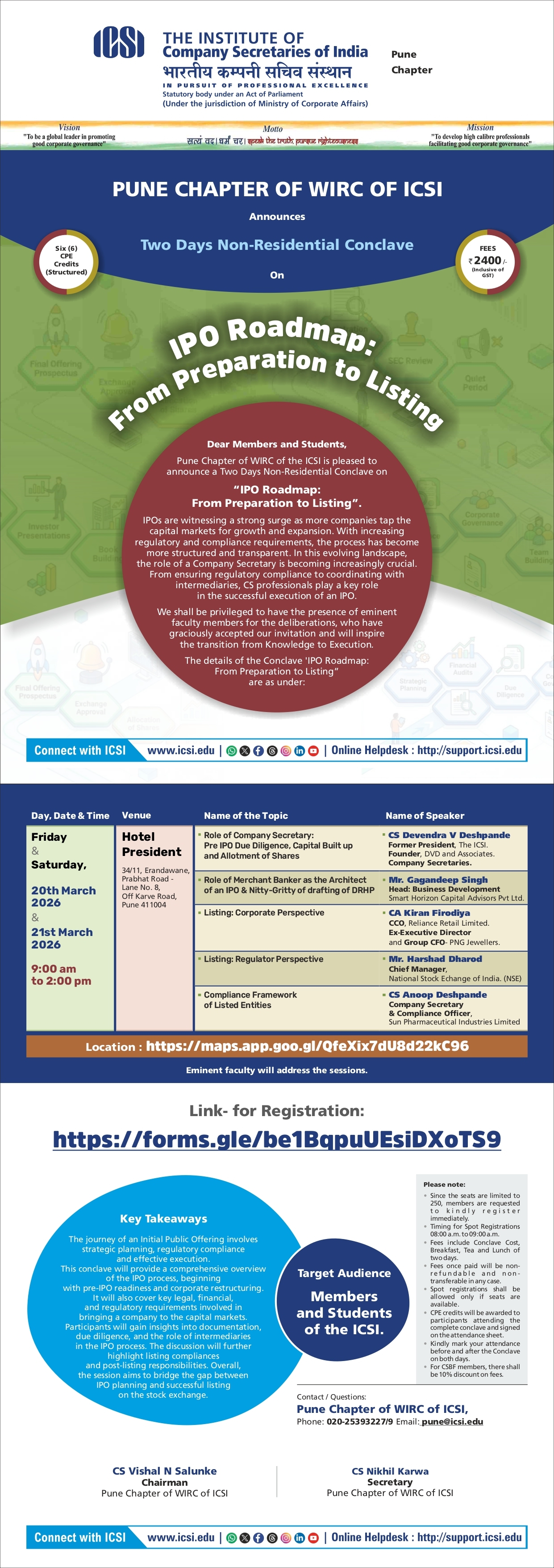 Pune Chapter of WIRC of ICSI Announces Two Day Non-Residential Conclave on IPO Roadmap: From Preparation to Listing