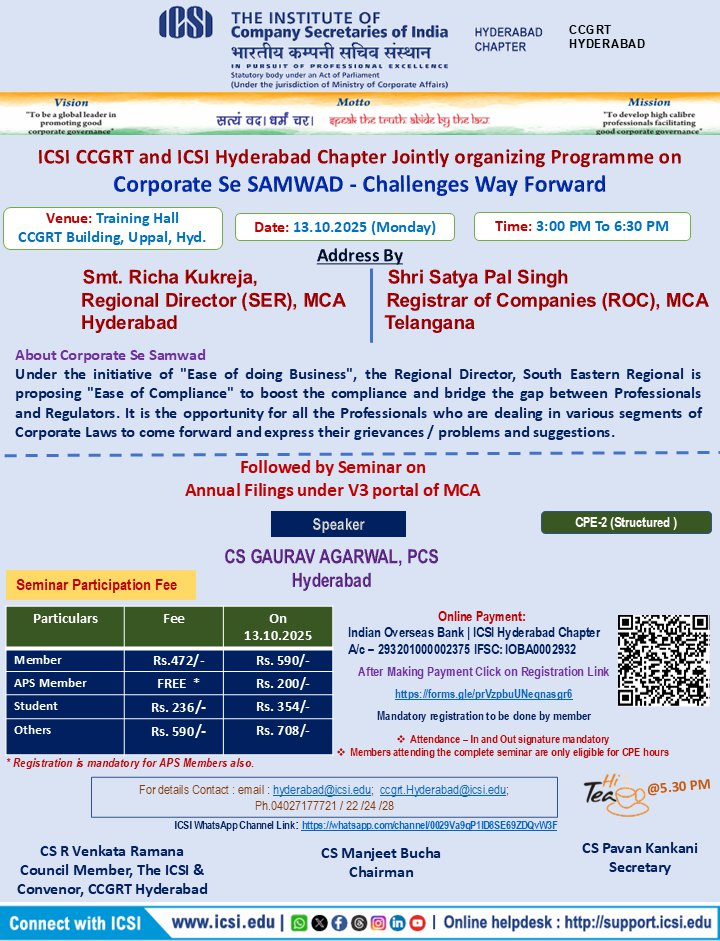 The Institute of Company Secretaries of India(ICSI) is constituted under an Act of Parliament i.e. the Company Secretaries Act, 1980 (Act No. 56 of 1980). ICSI is the only recognized professional body in India to develop and regulate the profession of Company Secretaries in India. The Institute of Company Secretaries of India awards the certificate of bestowing the designation of Company Secretary(CS) to a candidate qualifying for the membership of the Institute. It was in 1960 that the Company Law Board started a course in Company Secretaryship leading to the award of Government Diploma in Company Secretaryship. As the number of students taking up the Company Secretaryship course grew, the Government promoted on 4th October, 1968, Institute of Company Secretaries of India under Section 25 of the Companies Act, 1956 for taking over from the Government the conduct of Company Secretaryship examination. The Institute of Company Secretaries of India (ICSI) has since been converted into a statutory body w.e.f. 1.1.1981 under the Company Secretaries Act, 1980. The Institute of company Secretaries of India (ICSI) has its headquarters at New Delhi and four regional offices at New Delhi, Chennai, Kolkata and Mumbai. The Institute has four Regional Councils and under their jurisdiction 70 Chapters.