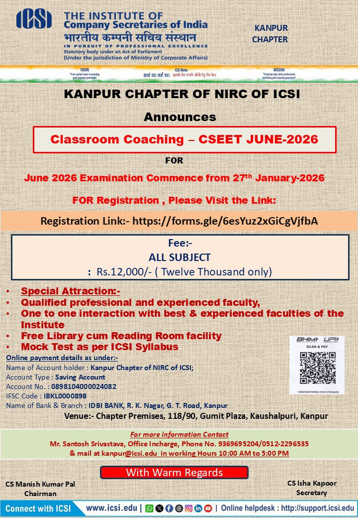 Announcesment Classroom Coaching – CSEET JUNE-2026