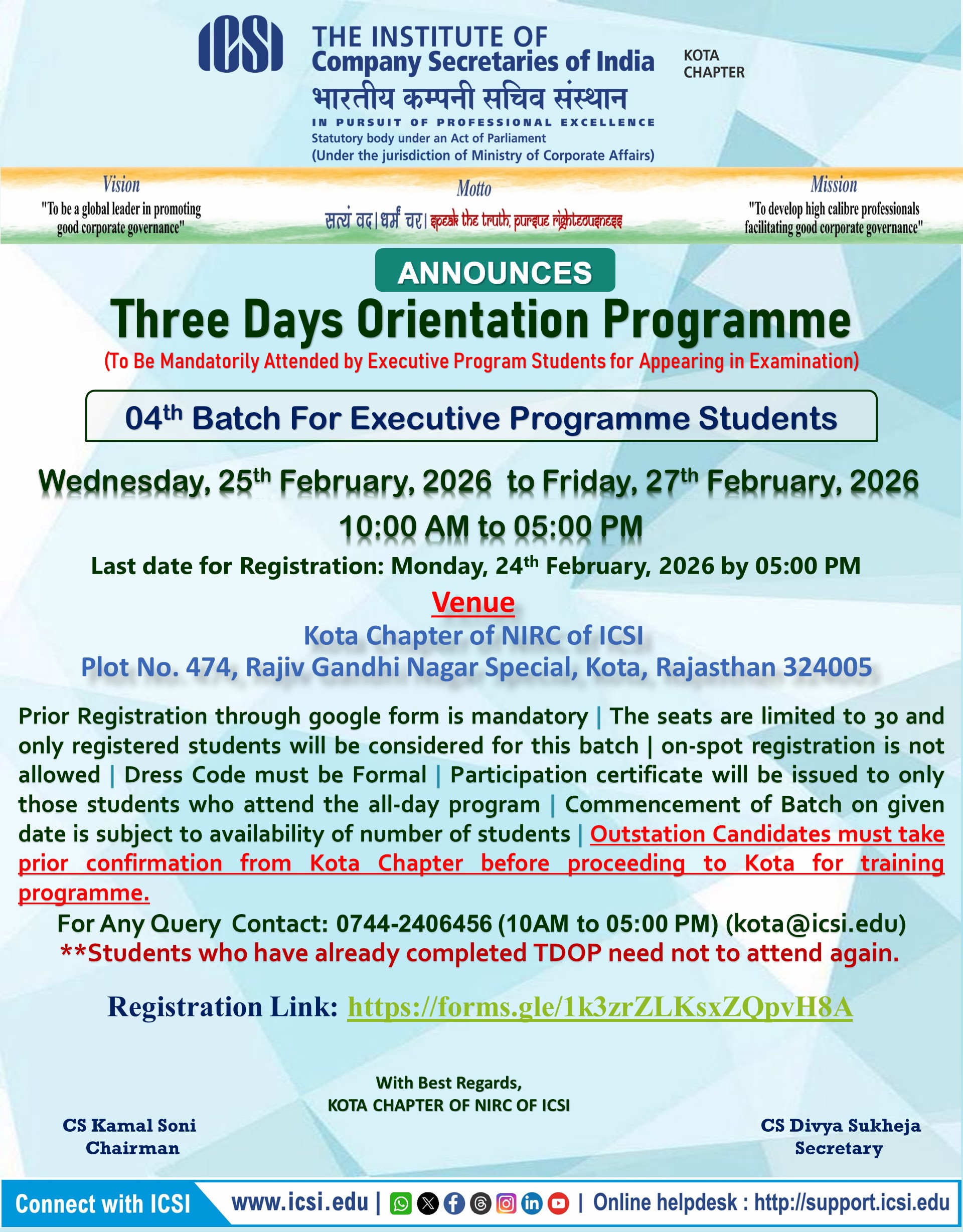 # ICSI Kota Chapter inviting for the position in various Sub-Committees from its Members having professional address of Kota may nominate themselves through the given link. Click Here to fill the google form of Kota Chapter Sub-Committee