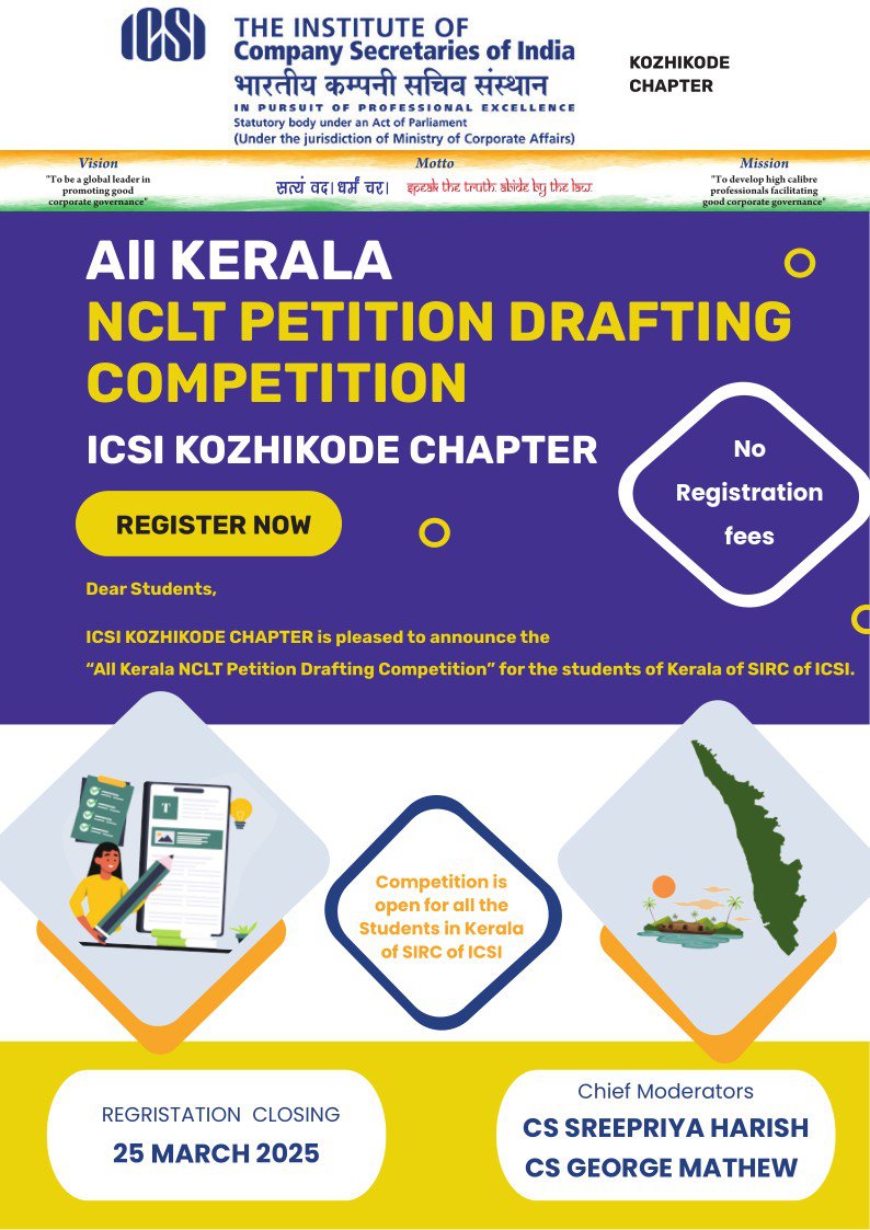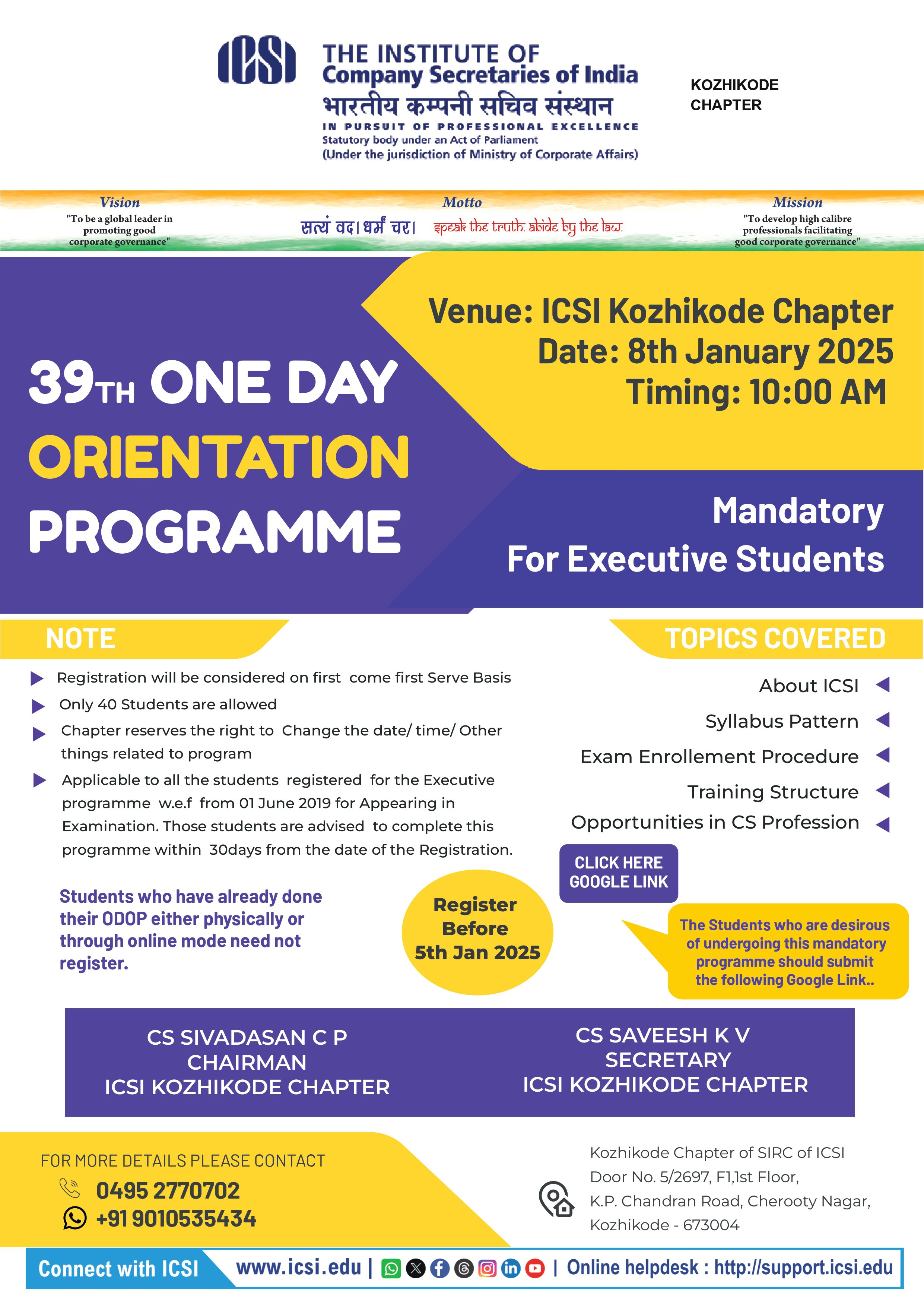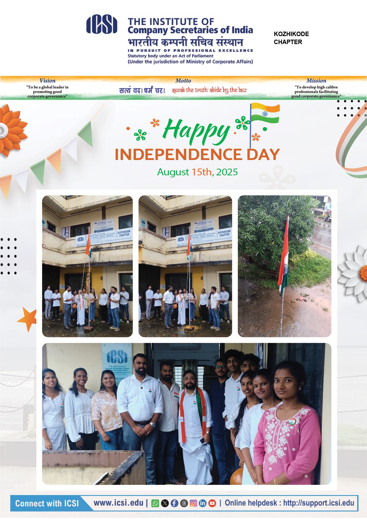 The ICSI Kozhikode Chapter joyfully celebrated the vibrant festival of Onam with great enthusiasm and traditional spirit. Students and members came together to interact, bond, and share festive moments of joy. The celebrations included the beautiful Pookkalam (floral decoration), a grand Onam Sadhya (traditional feast), and lively cultural exchanges, creating an atmosphere of unity and togetherness.