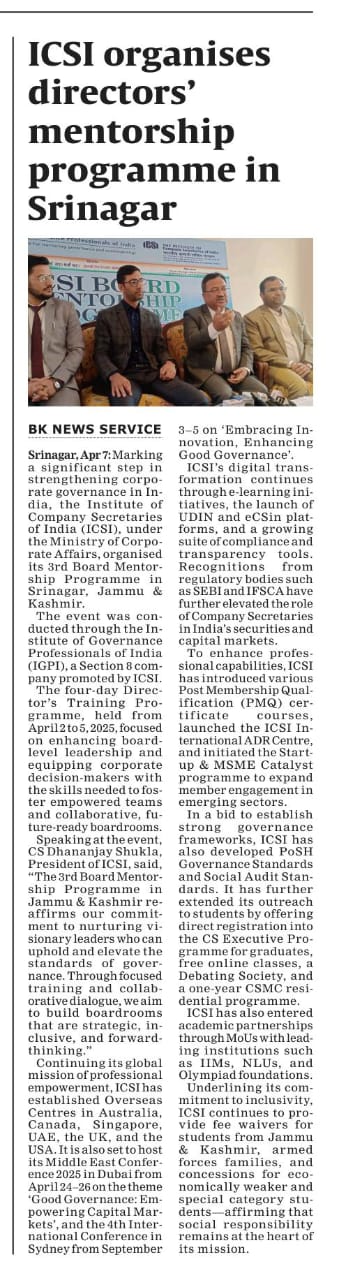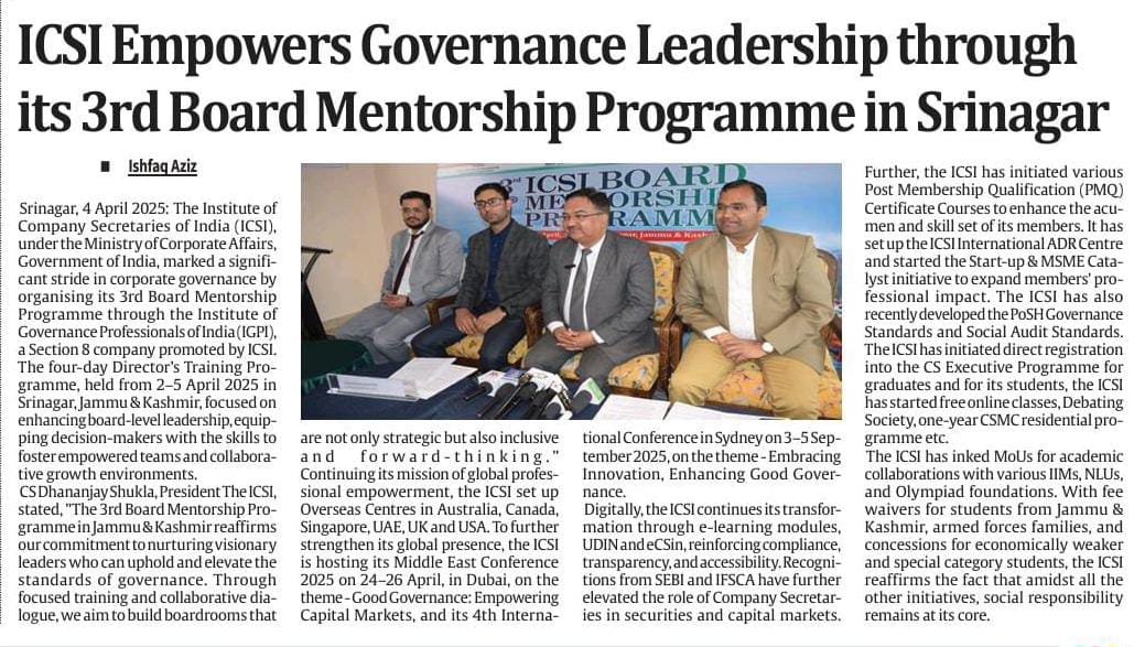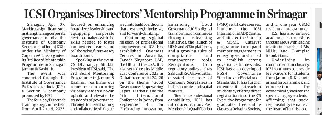 Guidance Note on MOU between ICSI and CGI (ICSA)