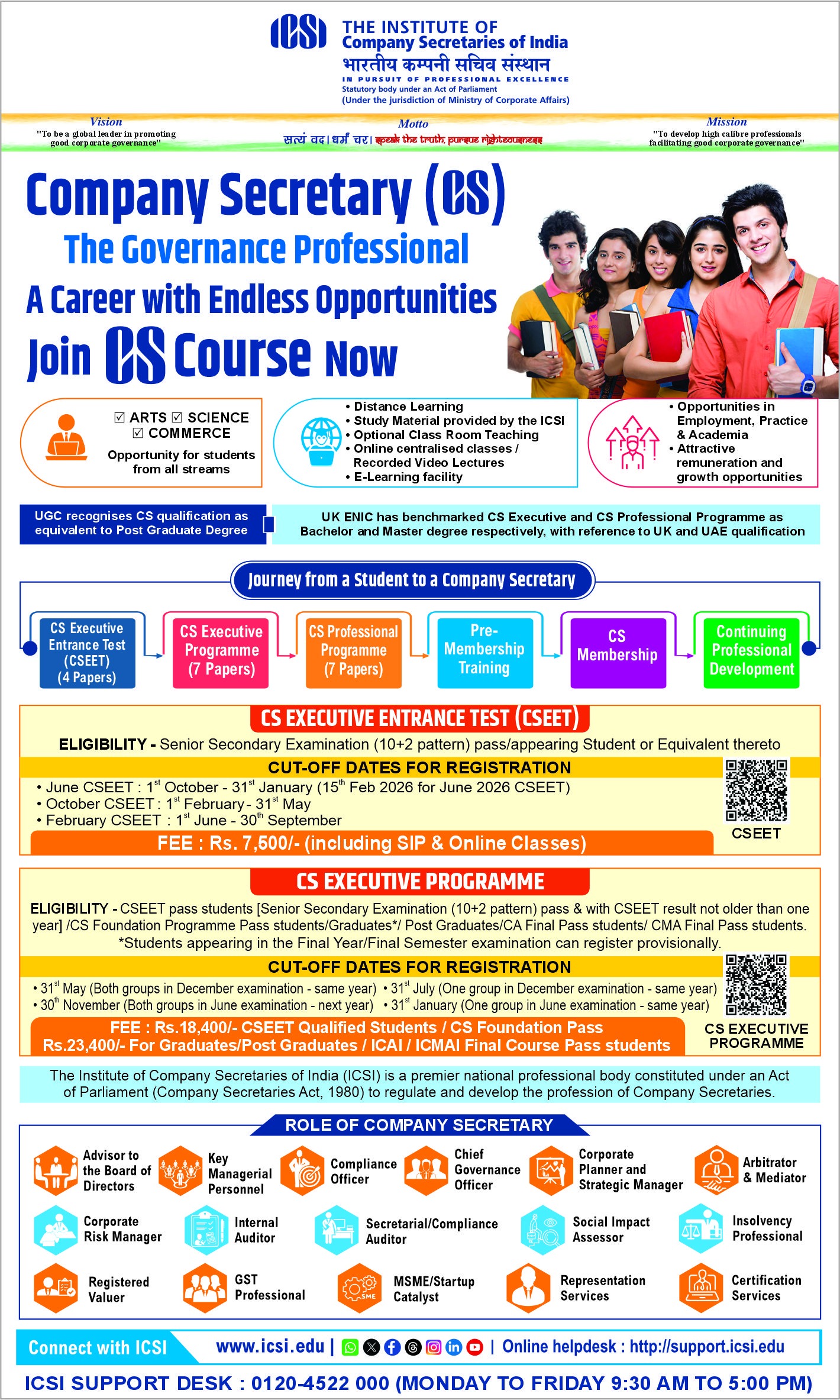 - Declaration of Result of Company Secretary Executive Entrance Test (CSEET), May, 2025 Session held on 03rd May, 2025 and 05th May, 2025