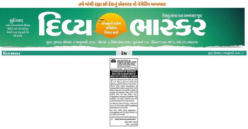 Tender Documents :https://www.icsi.edu/media/webmodules/tender/EOI_SURAT_dated_05.01.2025.pdf