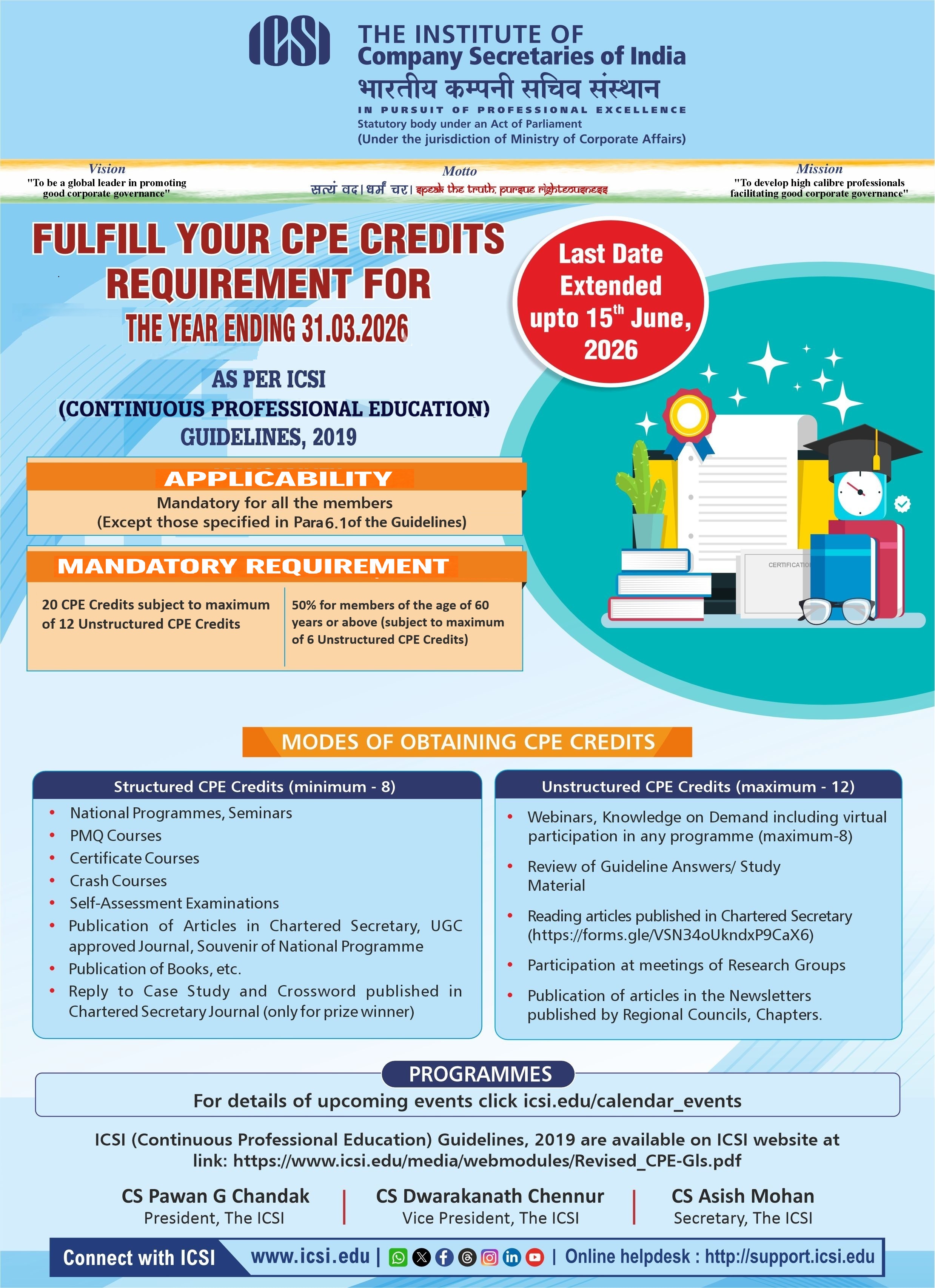- ICSI (Continuous Professional Education) Guidelines, 2019 applicable w.e.f 1st April, 2020.
