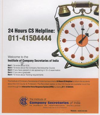 career opportunities both in employment and in practice. For details visit our website www.icsi.edu or call 0120-4239996 during office
