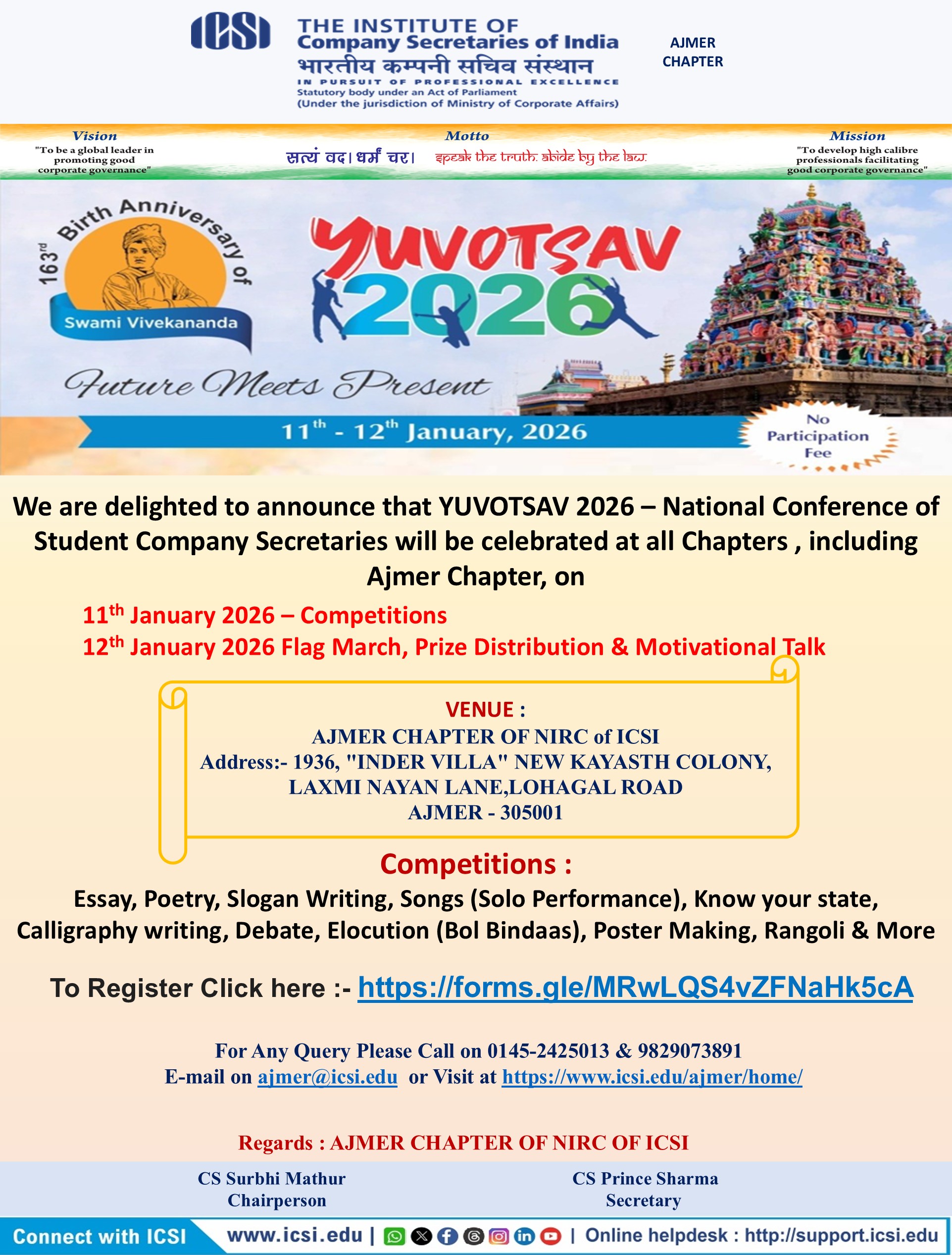 Yuvotsav-2026 Click here to register at Ajmer Chapter