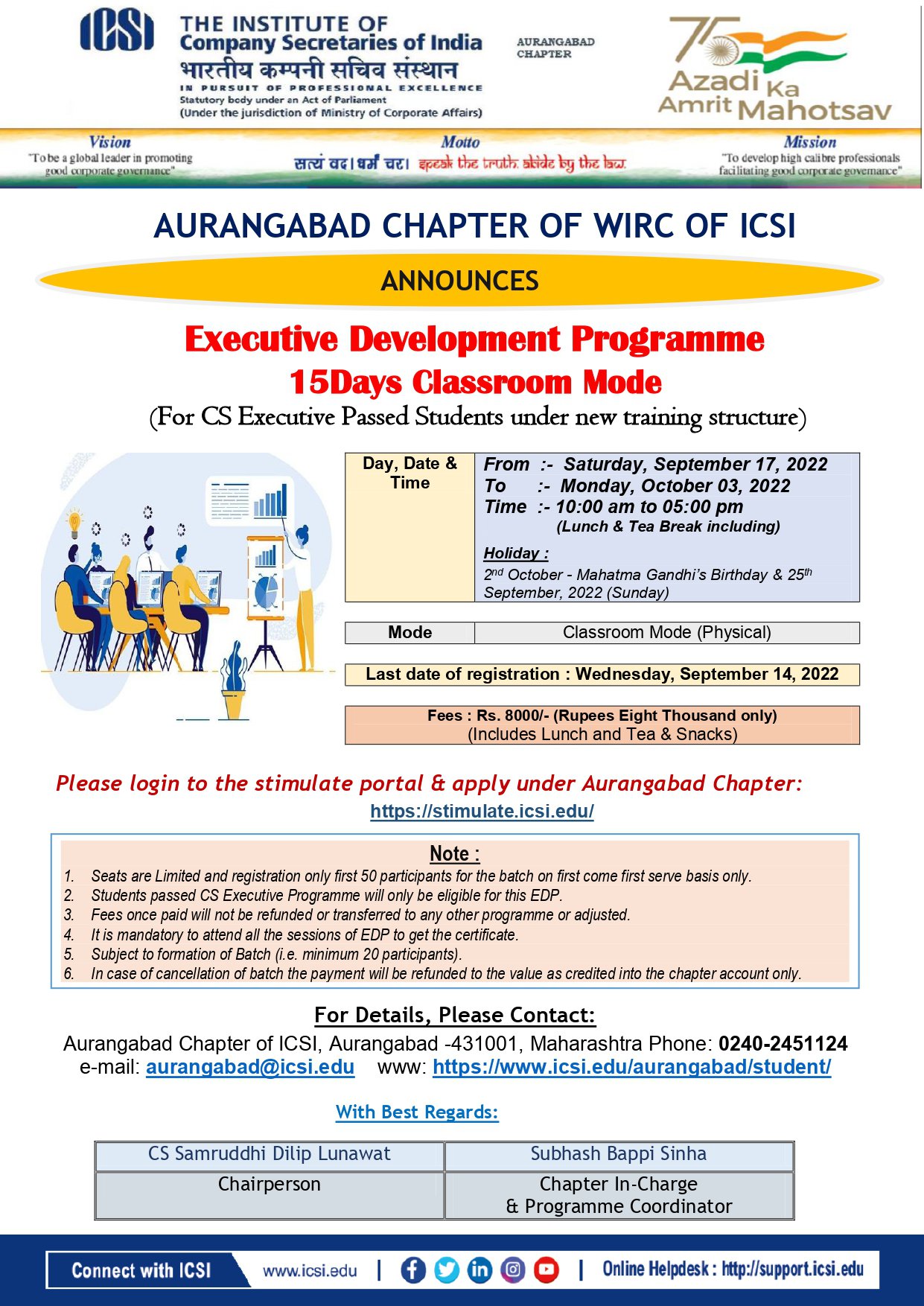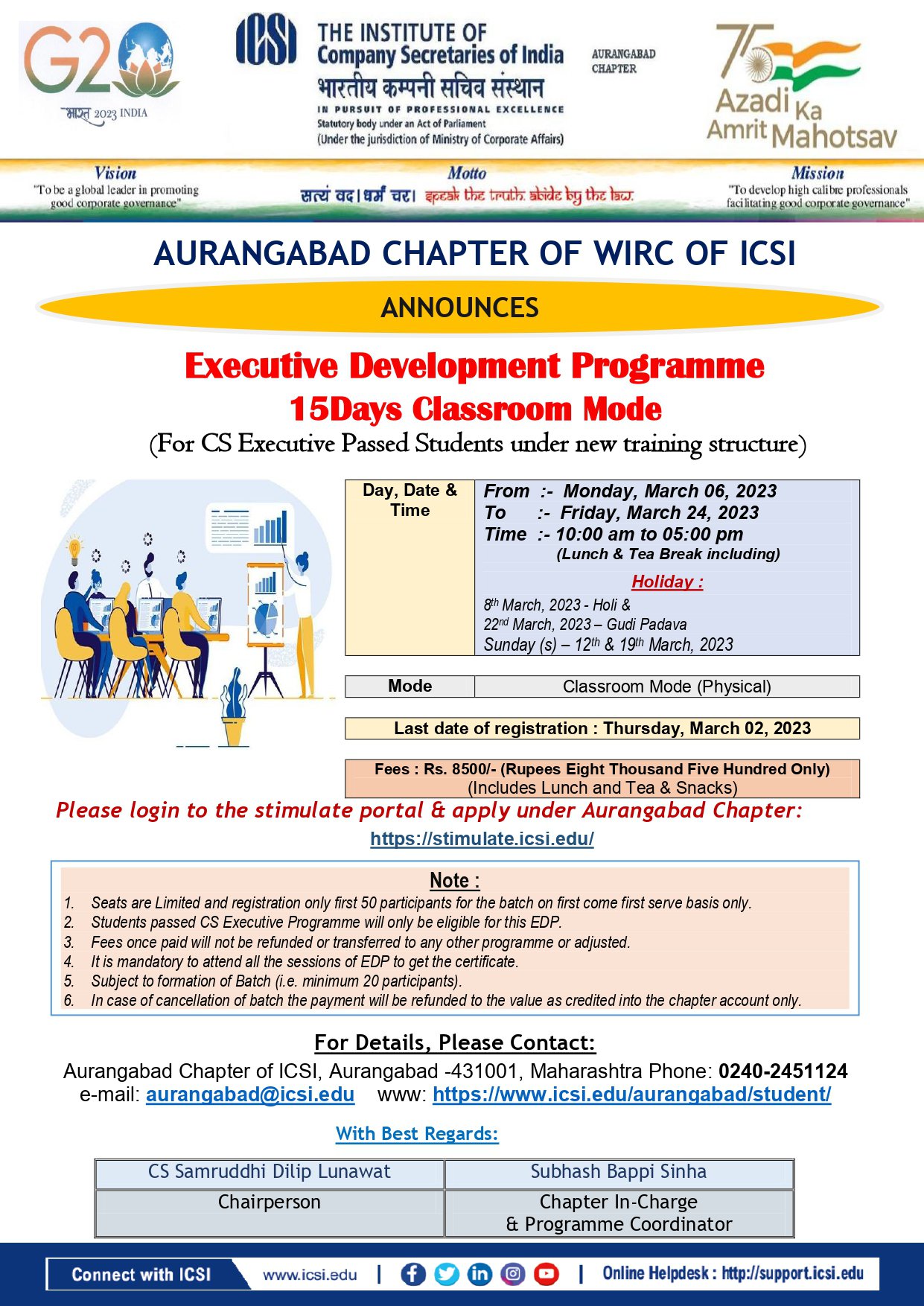3rd Batch - 15 Days Classroom Mode Executive Development Program - under New Training Structure.