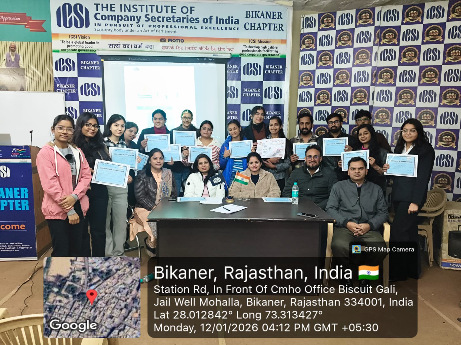TDOP TRAINING FROM 4TH AUG TO 6TH AUG 2025 BY BIKANER CHAPTER OF NIRC OF ICSI