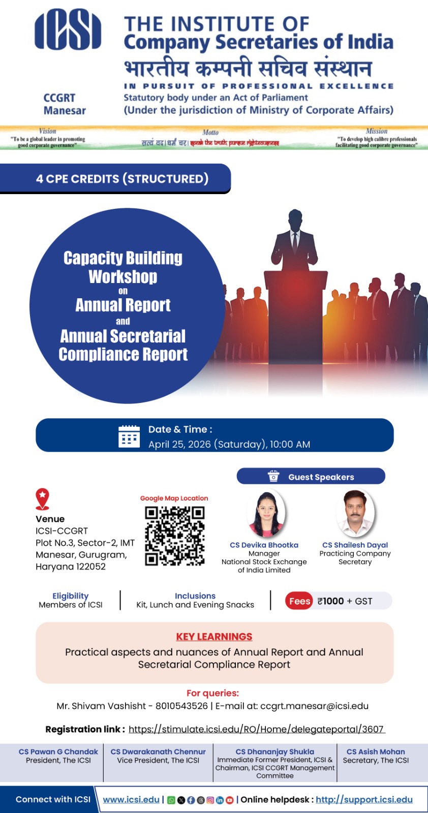 - Registration Open | Capacity Building Workshop on Adjudication/Compounding of Offences under Companies Act, 2013 on 04th April 2026