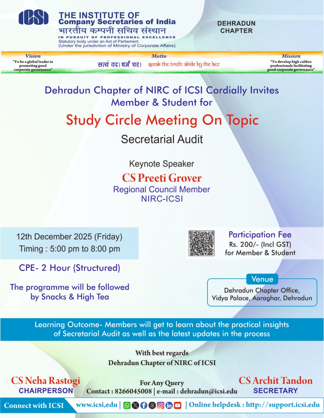 Study Circle Meting by Dehradun Chapter of NIRC of ICSI on Friday December 12 2025, from 5:00 PM onwards