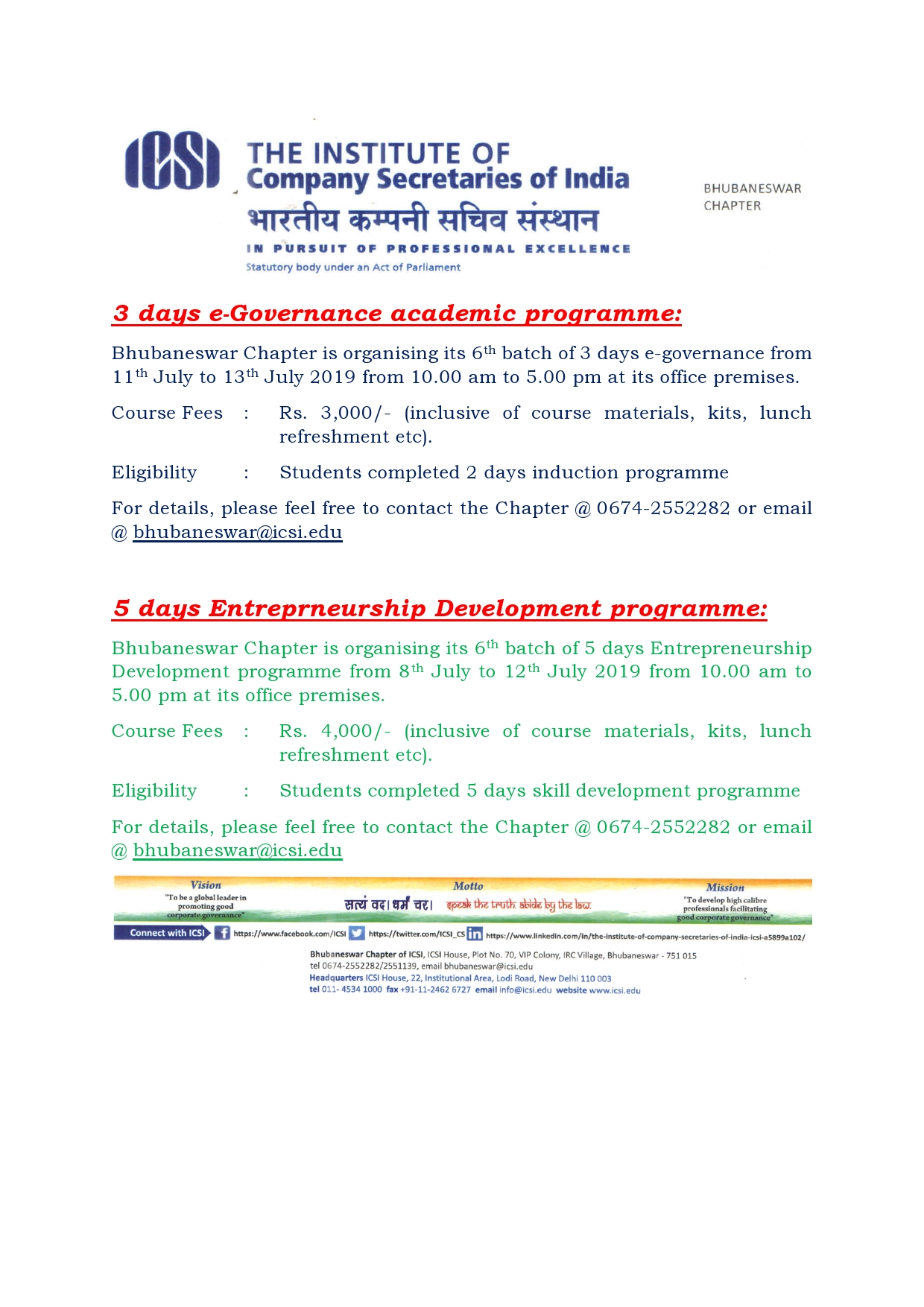 • 3 Days E-Governance & 5 Days E-Governance Academic Programme