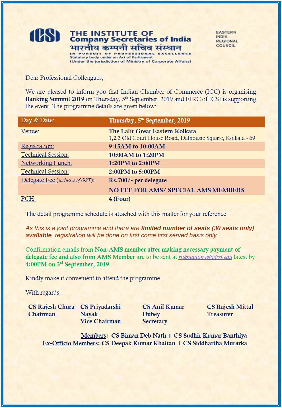 - ICC Banking Summit-2019 on Thursday, 05.09.2019 at The Lalit Great Eastern, Kolkata