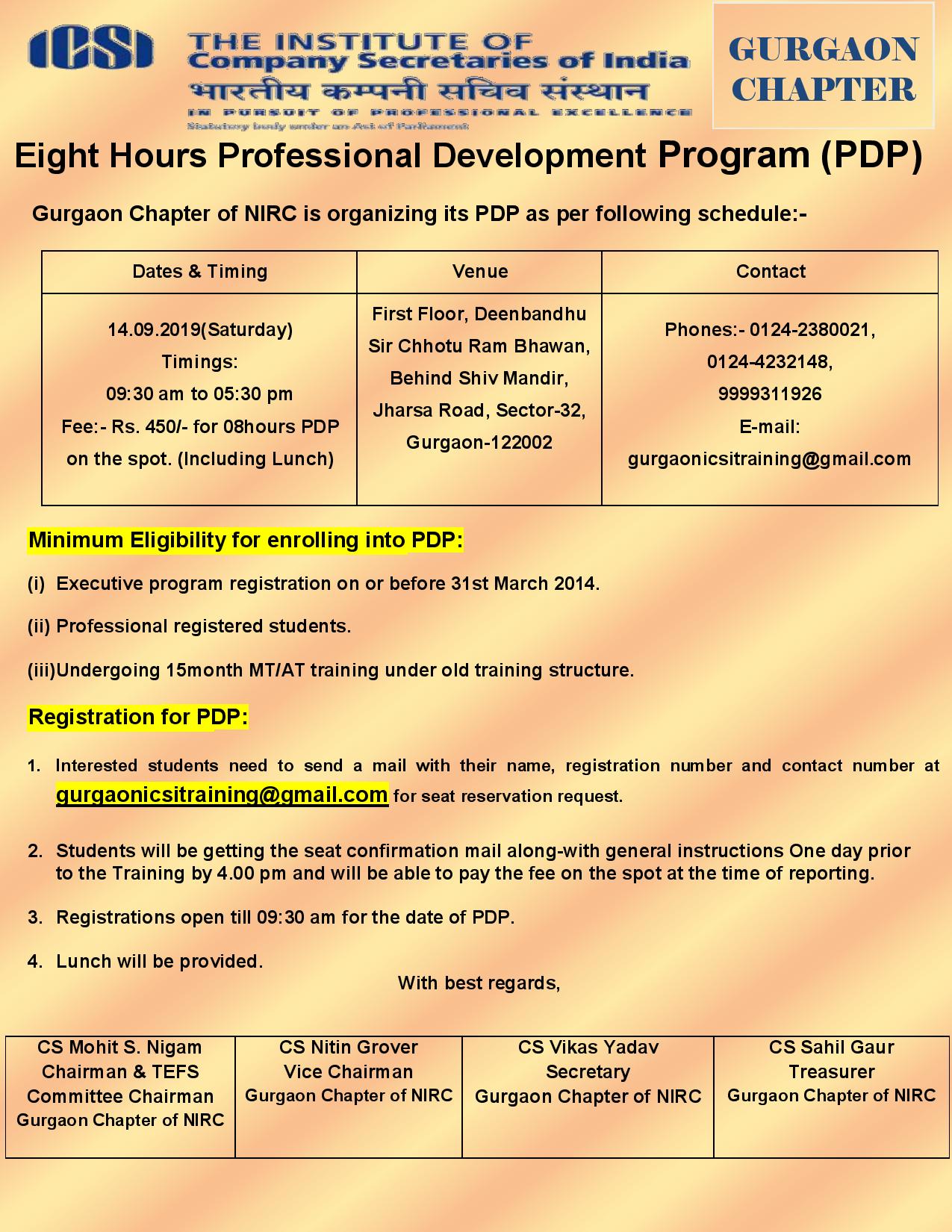 • Eight Hours PDP on 14.09.2019