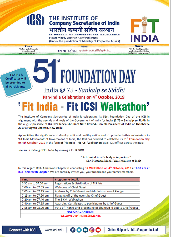 Invitation | ICSI 51st Foundation Day Celebration | 3KM Walk | Fit ICSI - Fit India