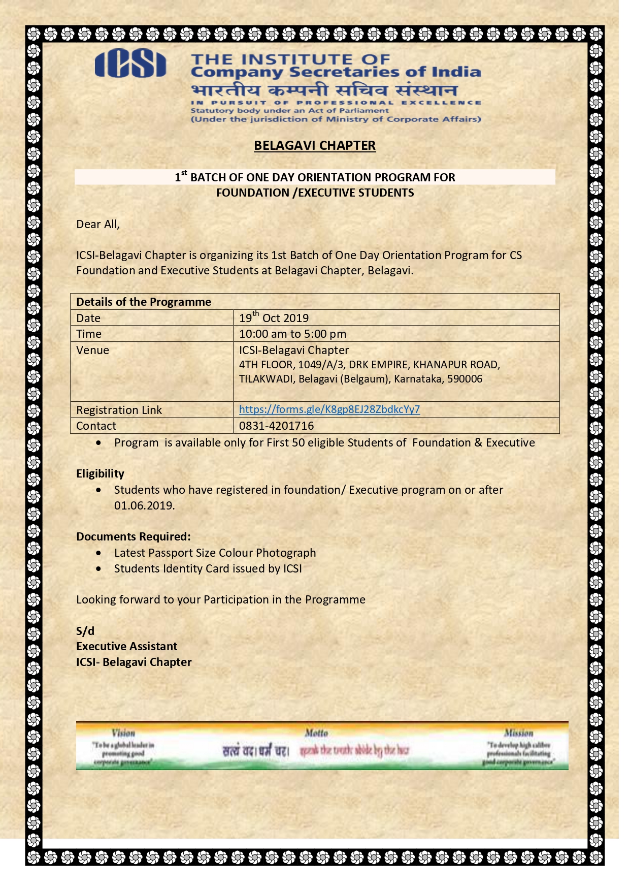 Registration for CSEET Pass Students in Executive Programme