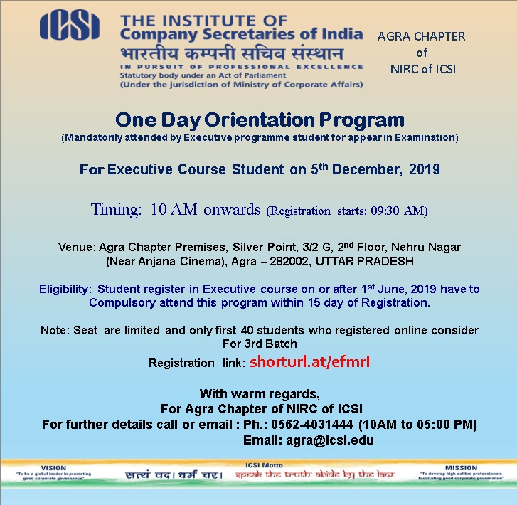 Eligibility: Student register in Executive course on or after 1st June, 2019 have to Compulsory attend this program within 15 day of Registration.