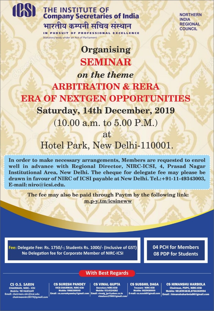 NIRC Seminar on the theme ARBITRATION RERA ERA OF NEXTGEN OPPORTUNITIES