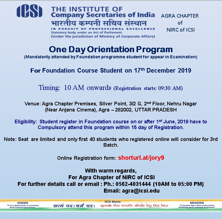 For Agra Chapter of NIRC of ICSI