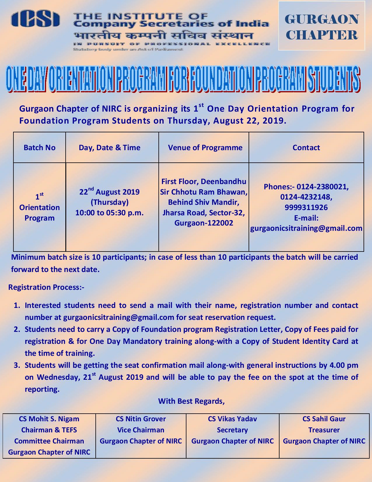 ONE DAY ORIENTATION PROGRAM FOR FOUNDATION