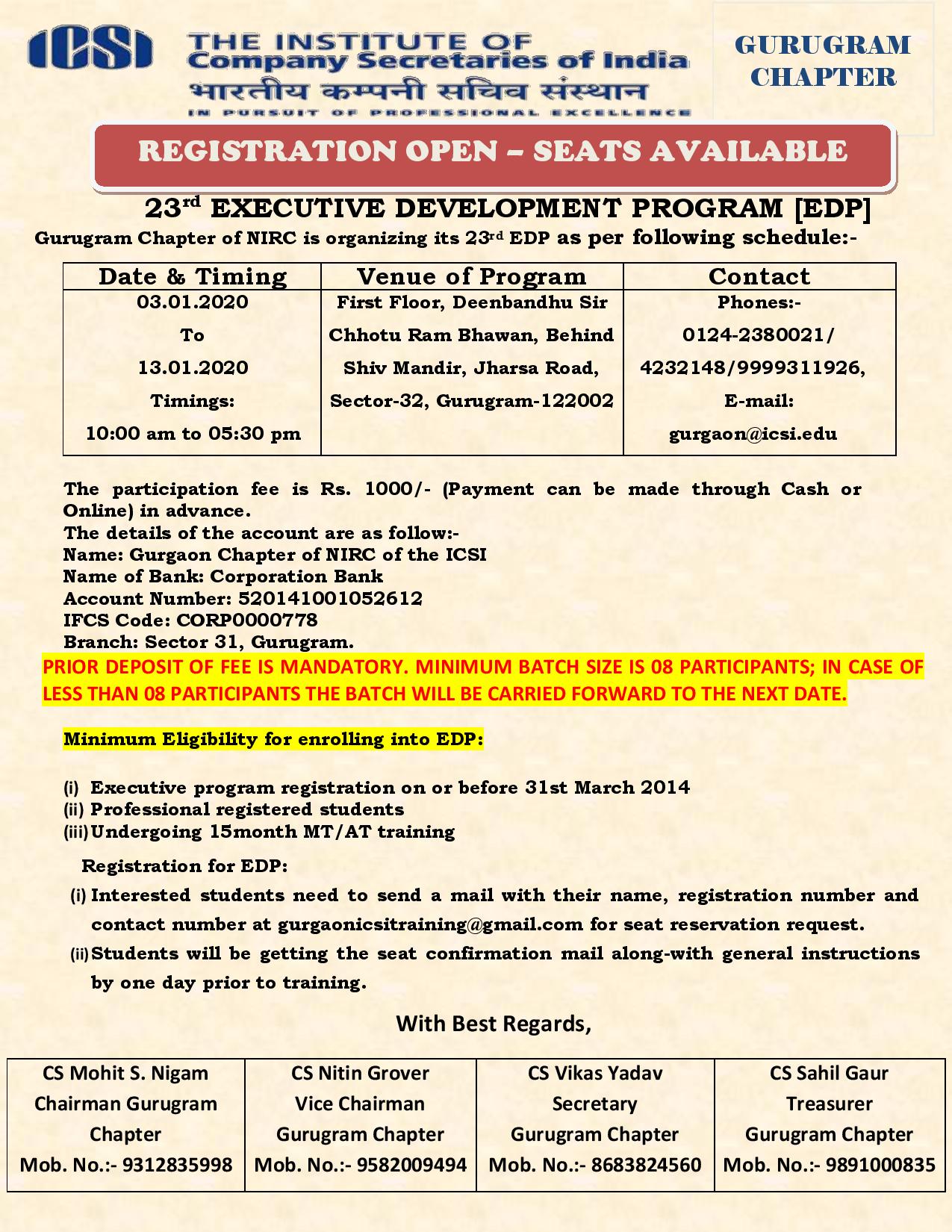 23RD EDP AT GURUGRAM CHAPTER FROM 03.01.2020 TO 13.01.2020