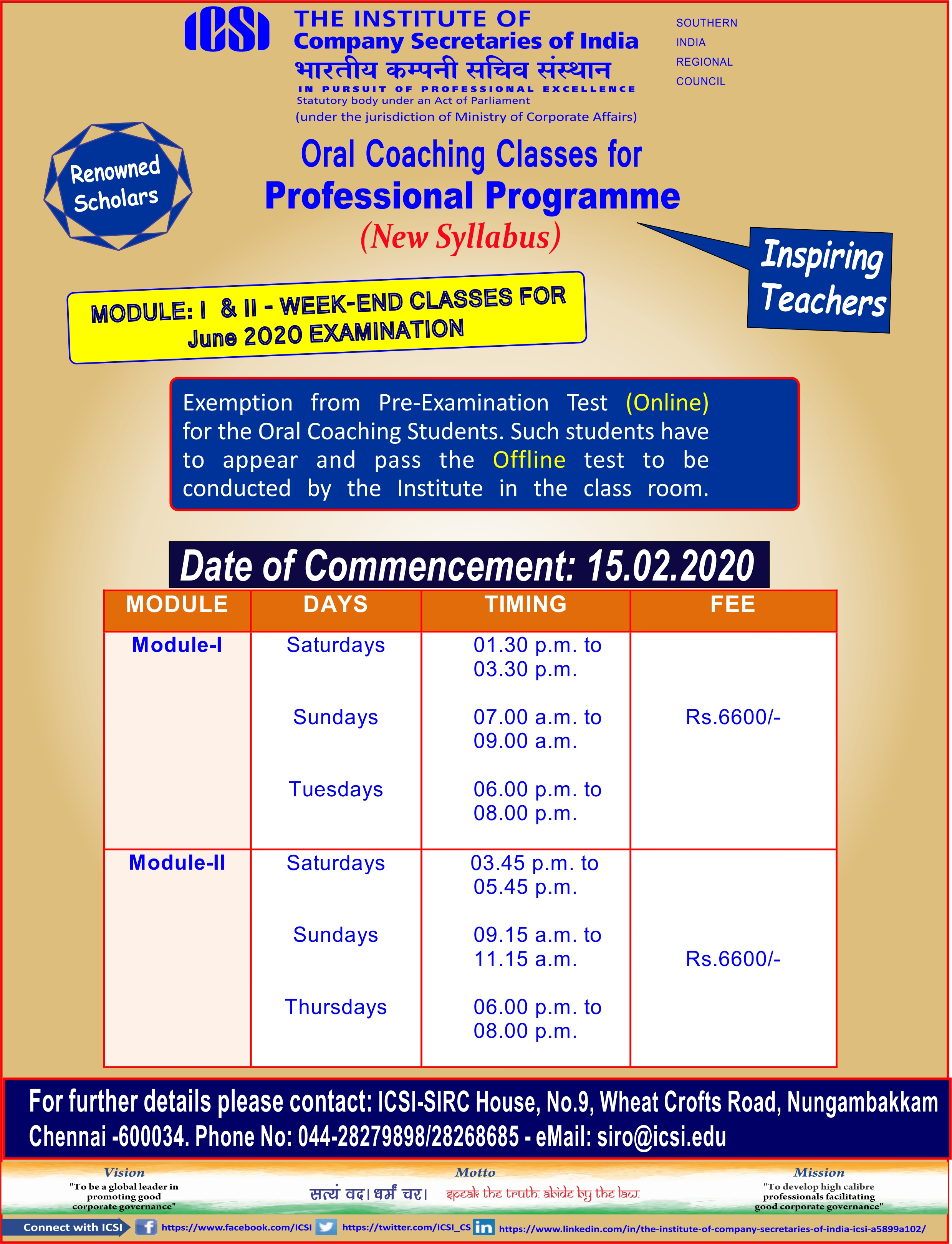 Oral Coaching Class for Professional Programme 2020