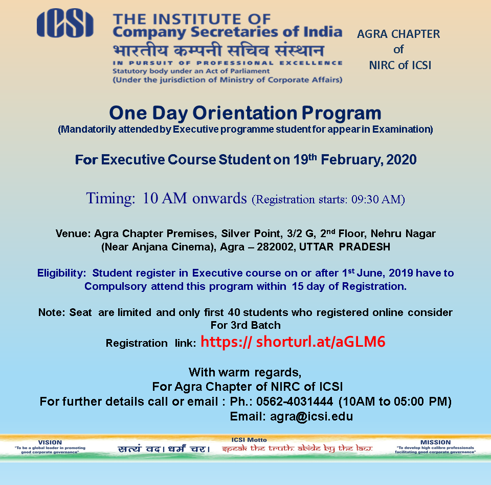 Eligibility: Student register in Executive course on or after 1st June, 2019 have to Compulsory attend this program within 15 day of Registration.