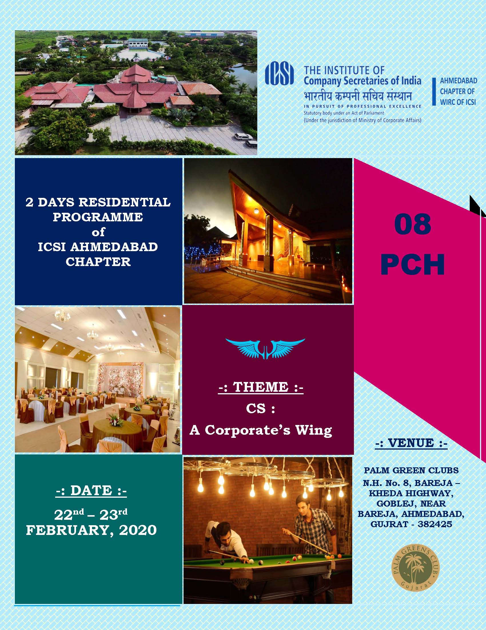 - Ahmedabad Chapter announces its 2 Days Residential Program with a theme " CS : A Corporate’s Wing" on February 22nd & 23rd, 2020