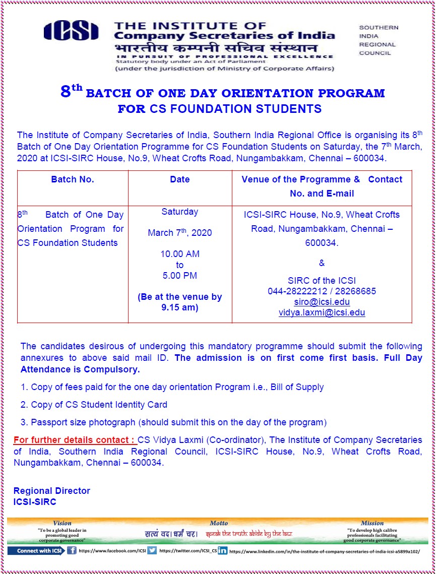 • https://www.icsi.edu/media/filer_public/46/86/46869e18-2525-4e44-9f06-1782d271f67a/one_day_orientation_announcemen-07032020.pdf