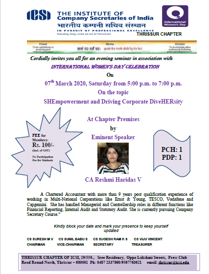 • SEMINAR IN ASSOCIATION WITH INTERNATIONAL WOMEN'S DAY CELEBRATION