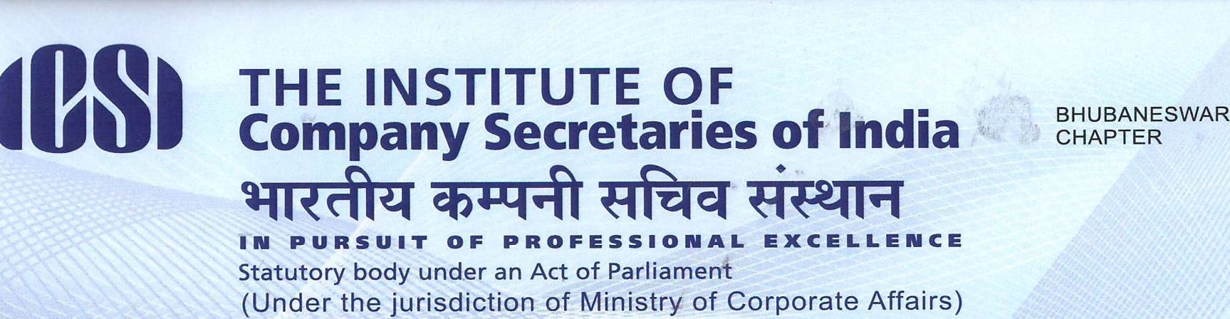 • Bhubaneswar Chapter is organising its 6th batch of 3 days e-governance on March 16-18, 2020 from 10.00 am to 5.00 pm at its office premises. Course Fees: Rs. 3,000/- (inclusive of course materials, kits, lunch refreshment etc). Eligibility: Students completed 2 days induction programme. For details, please feel free to contact the Chapter @ 0674-2552282 / 2551139 or email @ bhubaneswar@icsi.edu