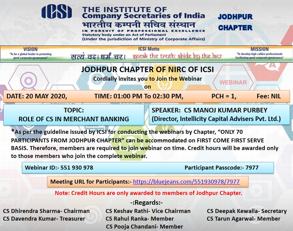 • Webinar on Role of CS in Merchant Banking