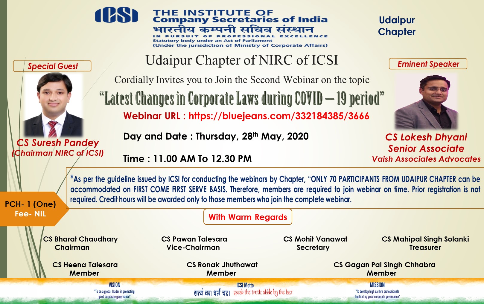 Webinar on Latest Changes in Corporate Laws during Covid-19 Period organised by Udaipur Chapter of NIRC of ICSI
