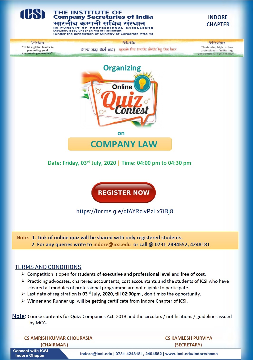 Online Quiz for Students on "Company Law" for Executive & Professional Students