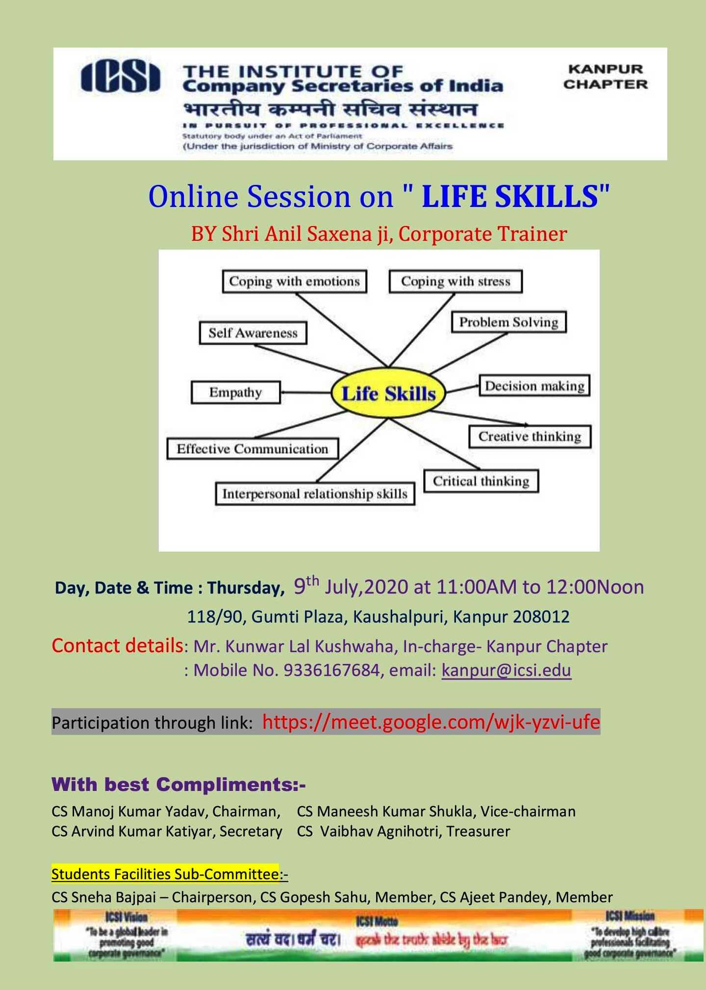 KANPUR CHAPTER- Online Session on " LIFE SKILLS"