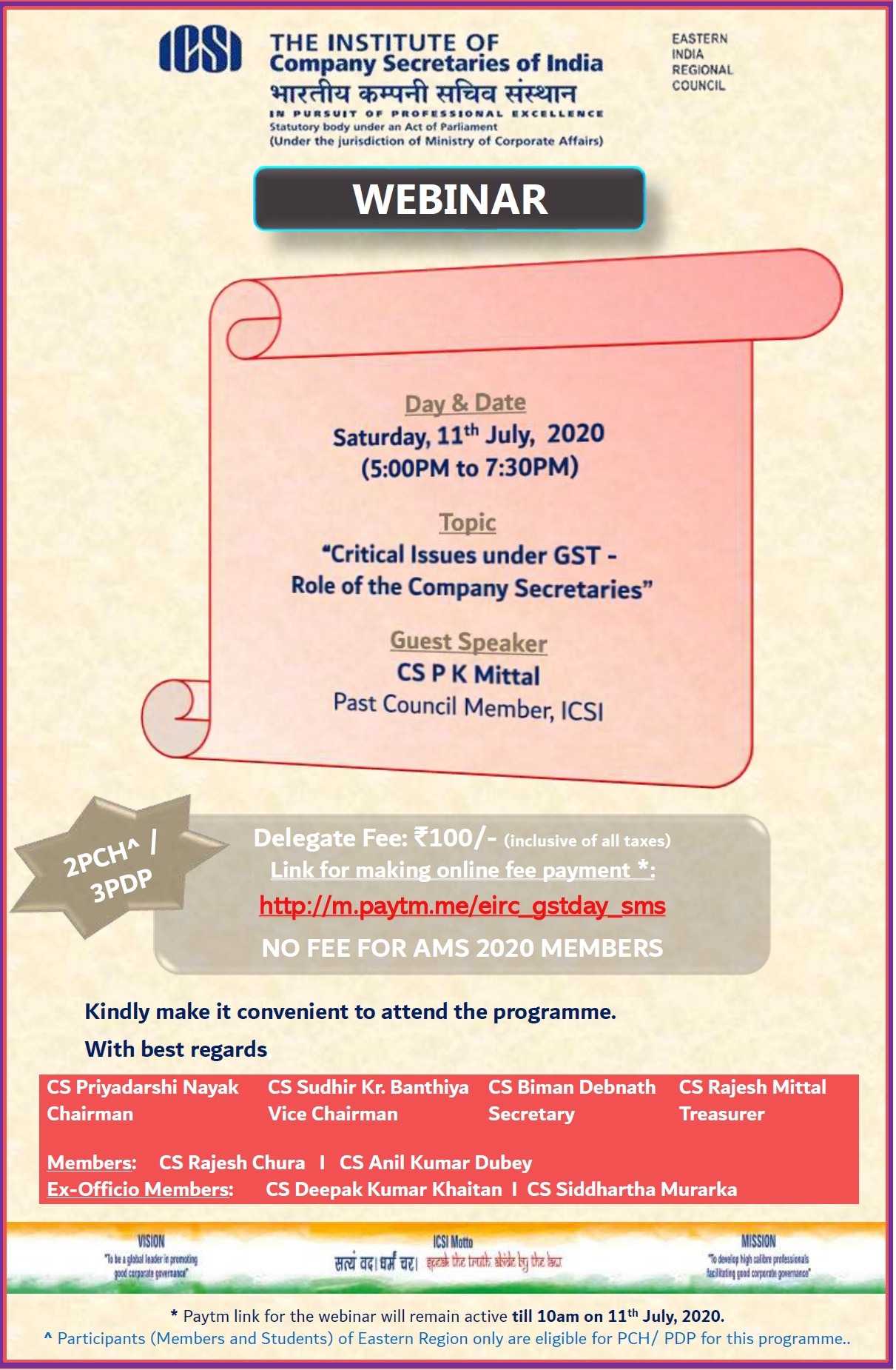 Delegate Fee: ₹100/- (inclusive of all taxes) Link for making online fee payment *: http://m.paytm.me/eirc_gstday_sms NO FEE FOR AMS 2020 MEMBERS