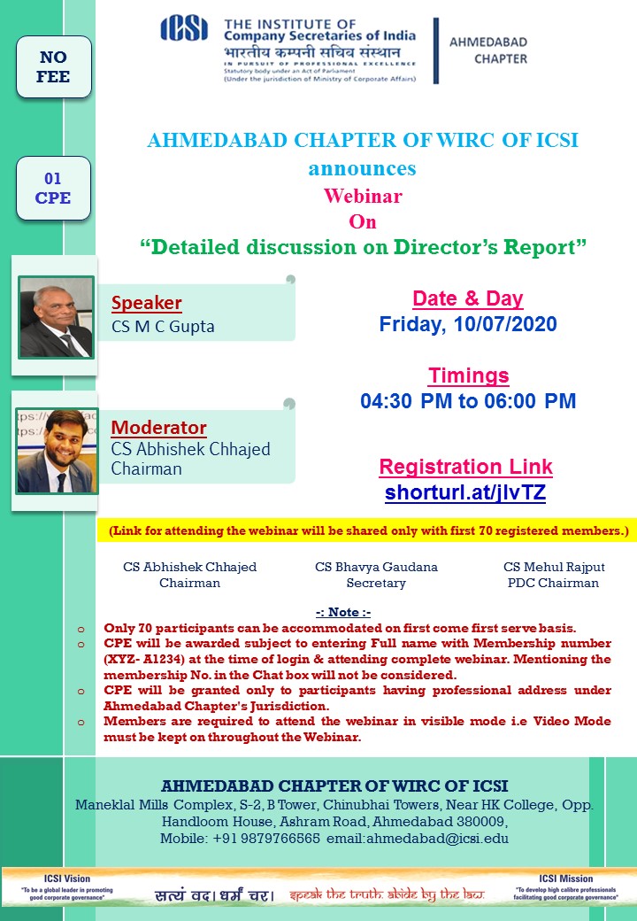 • Webinar on the Topic "Detailed Discussion on Director's Report”