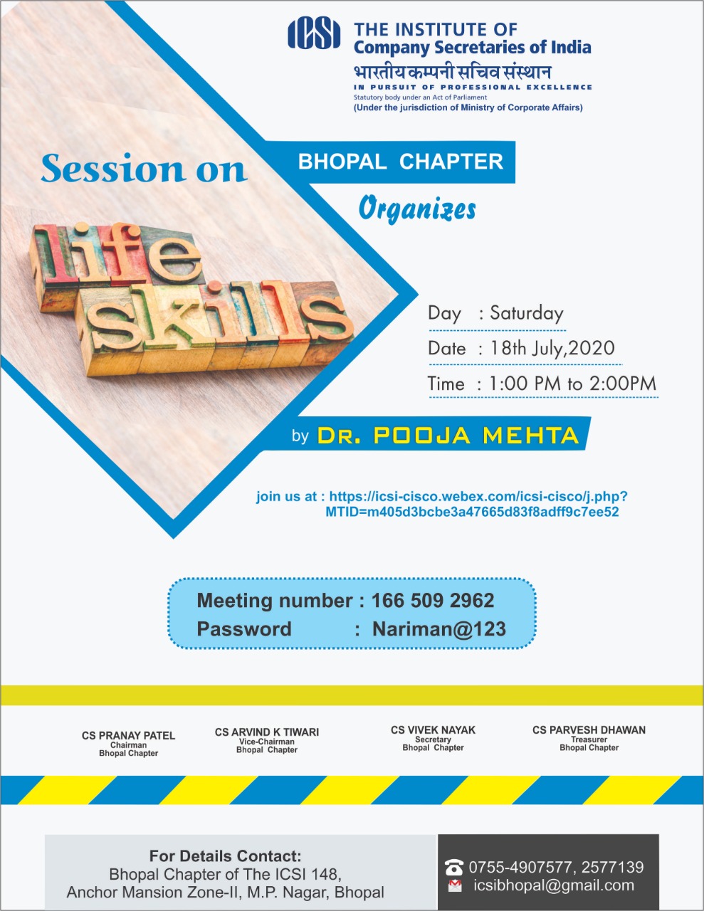 Bhopal Chapter organises "Session on Life Skills" by Dr. Pooja Mehta